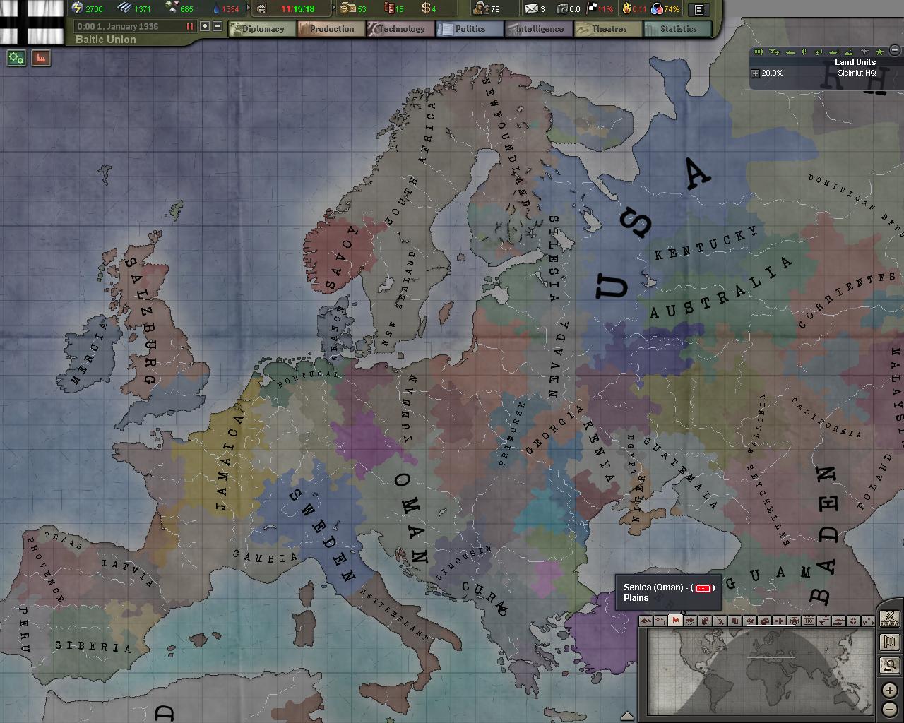 Uno de los mod mas divertidos que he probado, un generador te produce un escenario completamente distinto. ¿Suecia contra Suiza por la peninsula itálica?. Imposible en otro mod. Unas posibilidades tan aleatorias pueden producir a una Unión Soviética liderada por Hitler.